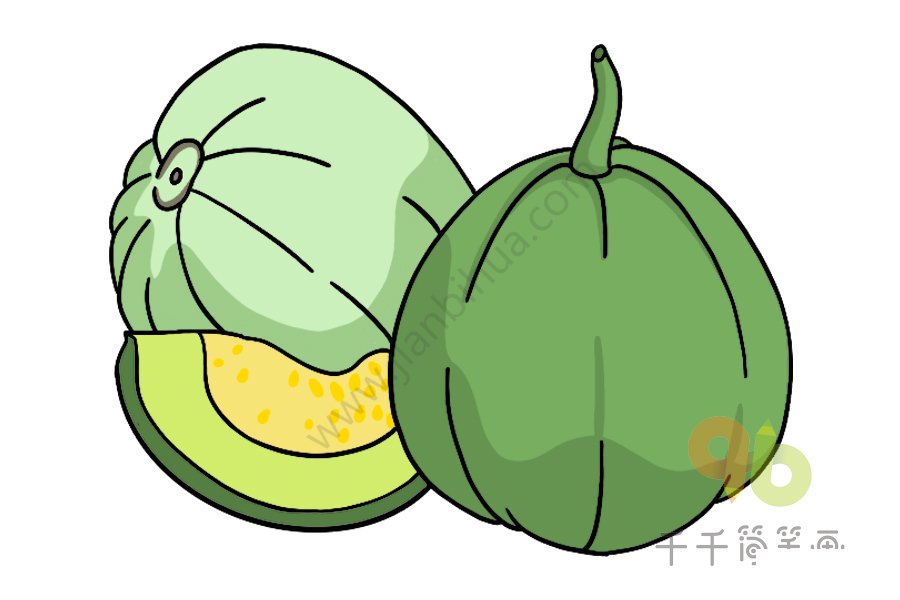 甜瓜含有葡萄糖、氨基酸、维生素C等多种营养物质,口感甜爽,特别好吃,是人们夏季喜欢吃的瓜类之一,小朋友们,你们喜欢吃甜瓜吗?接下来跟小编一起把它画出来吧!