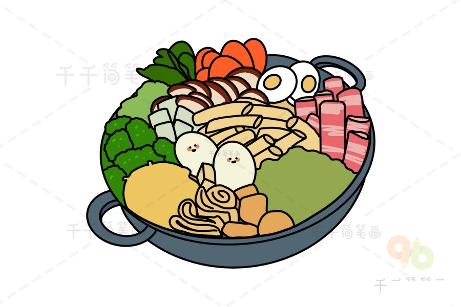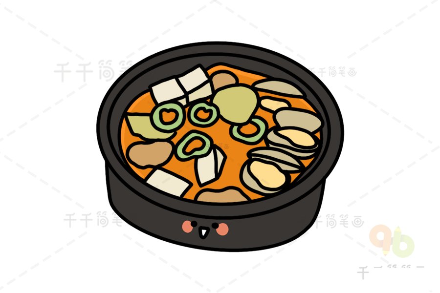 韩国年糕火锅简笔画