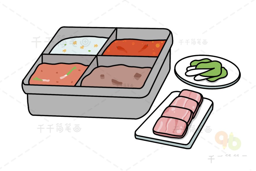 海底捞四宫格火锅简笔画