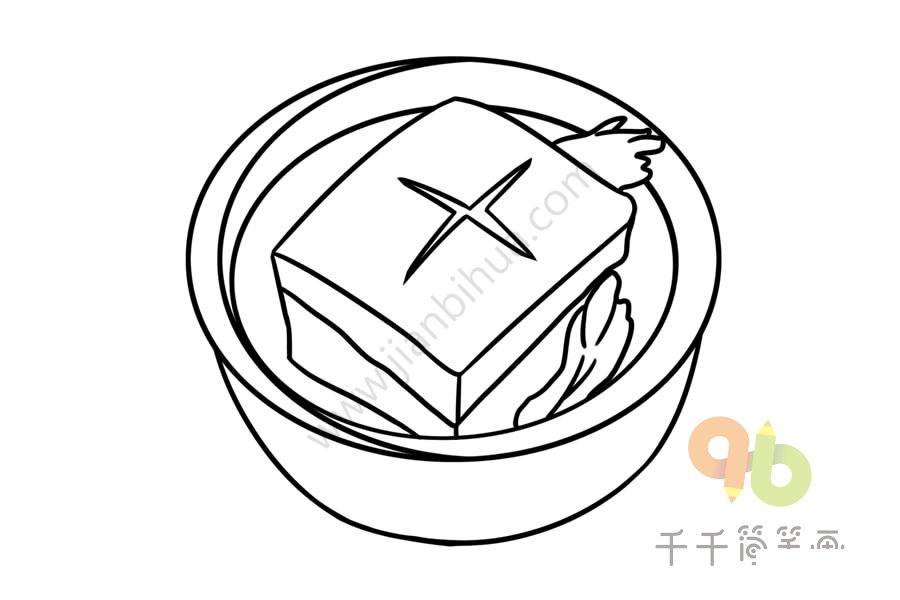 东坡肉,又名滚肉、东坡焖肉,是眉山和江南地区特色传统名菜。东坡肉在浙菜、川菜、鄂菜等菜系中都有,且各地做法也有不同,有先煮后烧的,有先煮后蒸的,有直接焖煮收汁的。一起来画东坡肉简笔画吧~