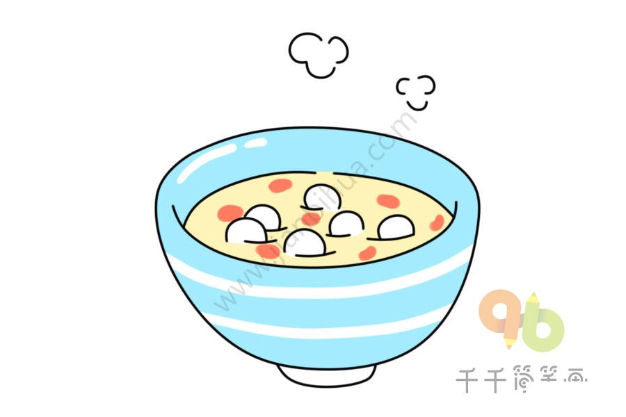 酒酿圆子简笔画,酒酿圆子怎么画,江南小吃简笔画,美食简笔画