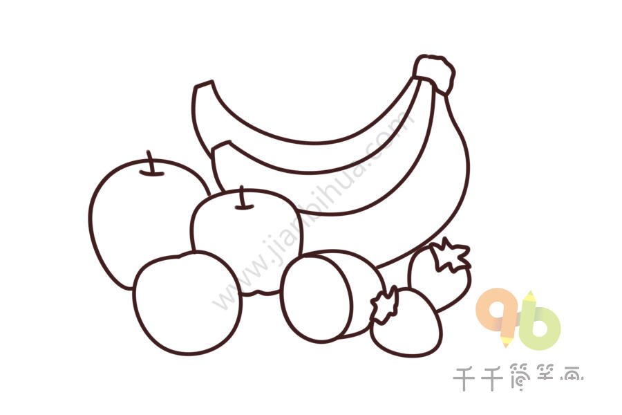 香蕉简笔画大全,苹果简笔画怎么画,草莓简笔画图片,橘子简笔画,猕猴桃简笔画图片