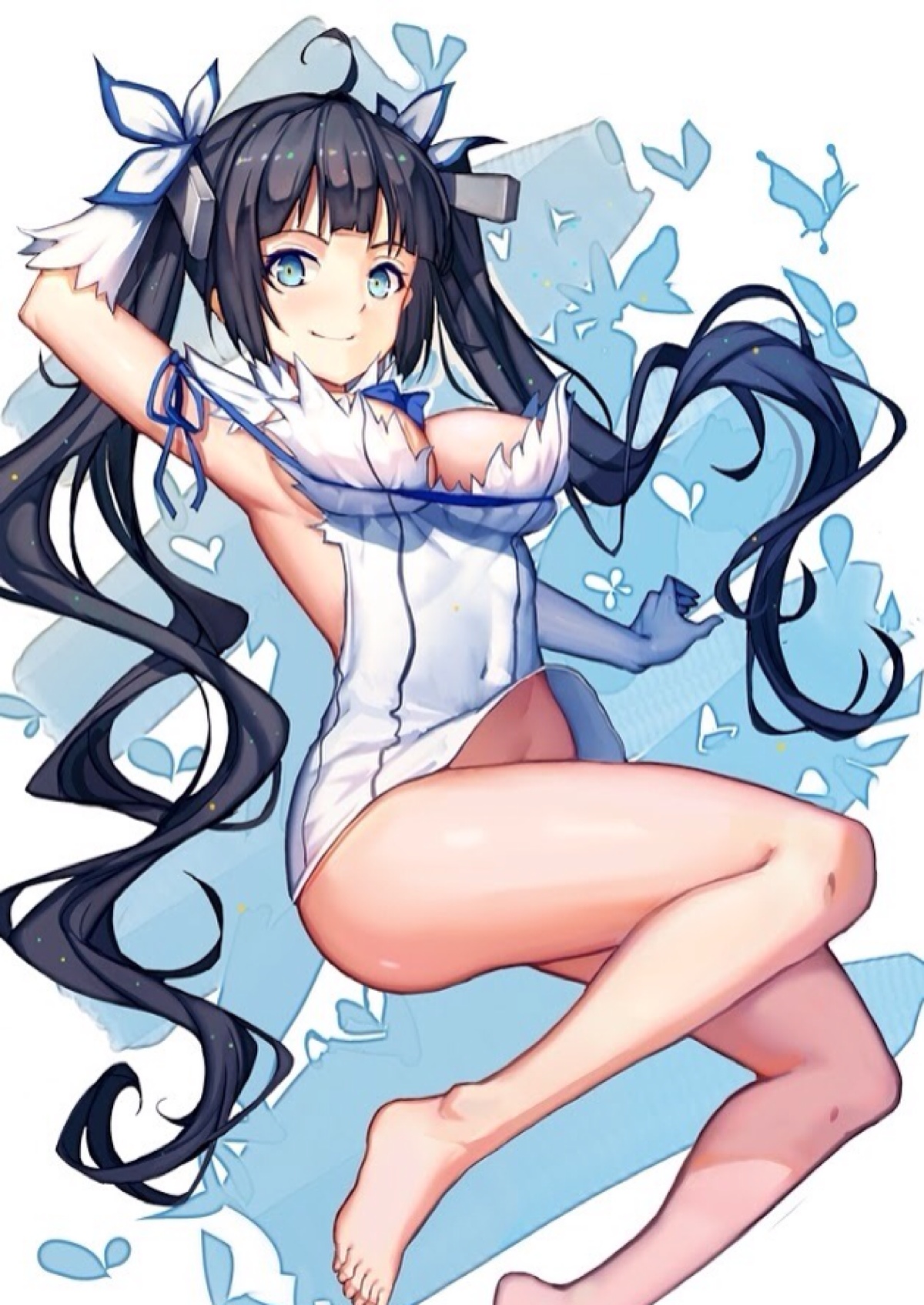 赫斯缇雅,动漫《在地下城寻求邂逅是否搞错了什么》中的人物。黑色双马尾(12话是长发)。容貌、体格一如「萝莉神」之名娇小稚嫩,不过却拥有着丰满的上围,有“巨乳萝莉”之称。特征是从胸下穿过并绑在手臂上的蓝色丝带。