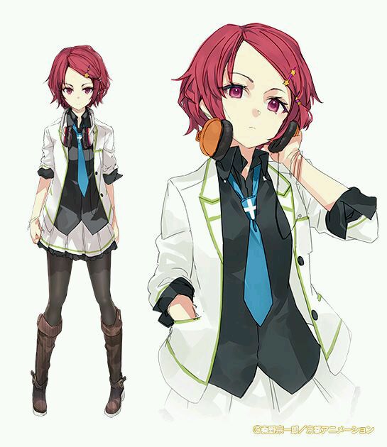 红色头发和耳机是她的特点,是个冷美人。
